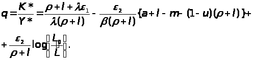 З (1.4), (2.3.6), (2.3.7), (2.3.10) та (2.3.11) випливає, шо рівноважна траекторія росту зайнятості визначається рівнянням