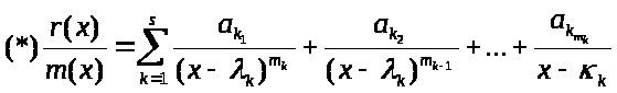 Среди многочленов из С[x], принимающих одинаковые значения на спектре матрицы А, что и f(x), степени не выше (m-1), принимающий одинаковые значения на спектре А, что и f(x) – это остаток от деления любого многочлена g(x), имеющего те же значения на спектре матрицы А, что и f(x), на минимальный многочлен m(x)=g(x)=m(x)*g(x)+r(x).