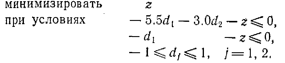 Оптимальным решением этой задачи является вектор d>4> = (-0.5171, 1.0000)T и z>4>=— 2.340.