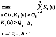 Выделение критерия K>t> в качестве основного и назначение пороговых величин b>r>, для остальных частных критериев фактически означает, что все стратегии разбиваются на два класса. К одному относятся стратегии, которые удовлетворяют всем S—1 ограничениям K>r>(u)b>r>; такие стратегии можно назвать допустимыми. К другому классу относятся такие стратегии, которые не удовлетворяют хотя бы одному из указаных S—1 неравенств. Наконец, среди допустимых стратегий предпочтительнее считается та, для которой значение Критерия K>l> больше.