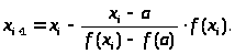 Здесь x:=x1-((b-x1)*fx(x1))/(fx(b)-fx(x1)) – рекуррентная формула,