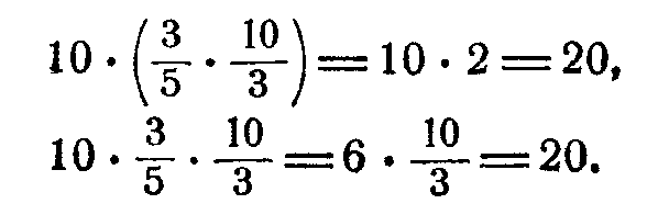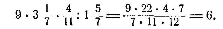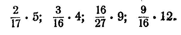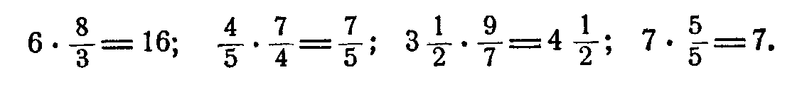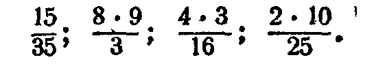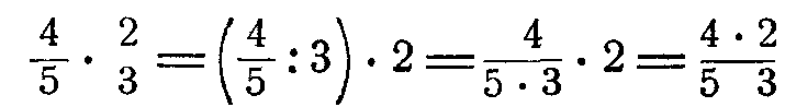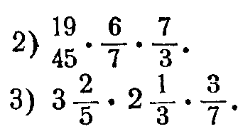 Необходимо обратить внимание учащихся на рациональные приемы вычислений с дробями в тех случаях, когда приходится выполнять последовательно несколько умножений и делений; следует прежде обозначить действия, затем производить возможные сокращения и только после этого делать вычисление. Например;