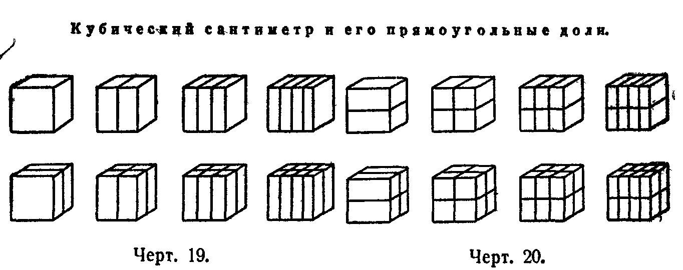 Делая соответствующий рисунок в тетрадях, учащиеся могут сами находить доли линейного дециметра, квадратного дециметра, чертить развертки кубического дециметра и его долей и дома склеивать соответствующие модели. Наглядные пособия при изучении дробей.