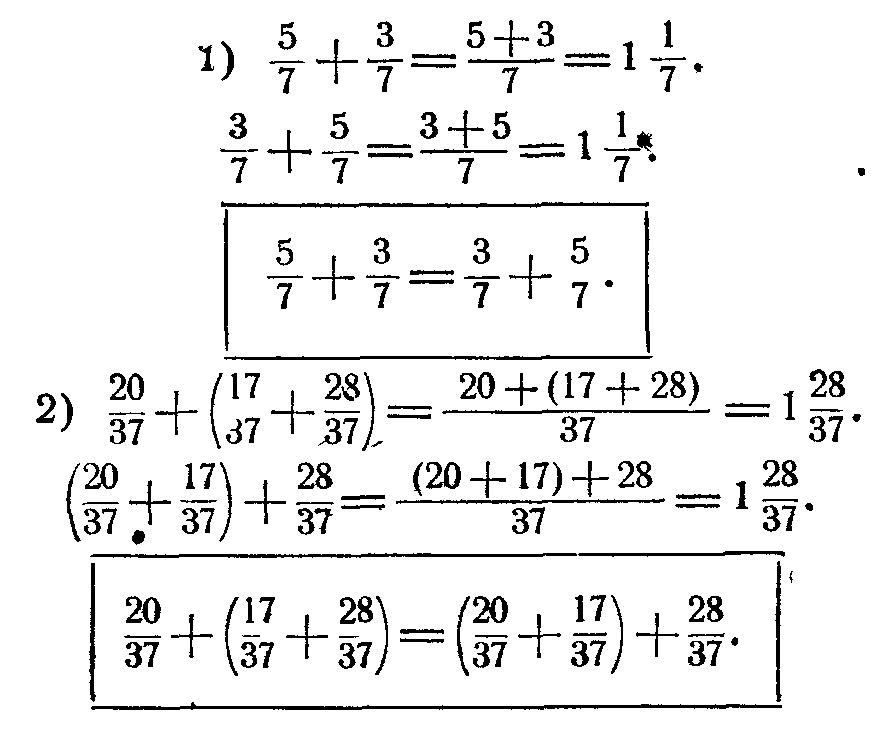 4) дробные числа подчиняются всем законам арифметических действий, установленным выше для чисел натуральных.