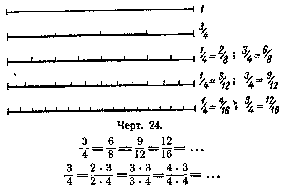 После того как введено понятие дроби, необходимо ввести понятия равенства и неравенства дробей. В теоретических курсах эти понятия вводятся путем определений. В школьном курсе необходимо показать предварительно целесообразность вводимых определений путем рассмотрения конкретных примеров.
