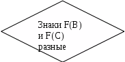 Теперь принимаем отрезок [a’,b’] за новый отрезок [a,b] и повторяем шаги 1-4 до тех пор, пока разность F(b)-F(a) не станет меньше первоначально заложенной погрешности Q. Отметим также, что после этого рекомендуется в качестве искомого решения взять среднее арифметическое F(a) и F(b).