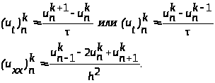 Совокупность разносных уравнений, аппроксимирующих исходную задачу – есть разностная схема. Рассмотрим их подробнее на примерах уравнения теплопроводности и колебания струны.