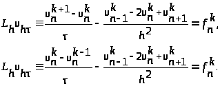 Где L>h> и φ>h> – разностные операторы, аппроксимирующие соответственно L и l; υ>h> – искомая сеточная функция, аппроксимирующая решение u; f>h>, φ>h> – заданные сеточные функции, аппроксимирующие f и φ.