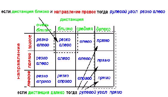 Если ДИСТАНЦИЯ БЛИЗКО и НАПРАВЛЕНИЕ ПРАВОЕ, тогда РУЛЕВОЙ УГОЛ РЕЗКО ВЛЕВО