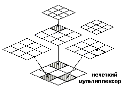 Кроме того, выходы нечетких узлов можно объединять с помощью мультиплексора - таким образом достигается более гладкий переход между множеством получающихся после обработки базы правил рекомендаций(рис.2.5.).