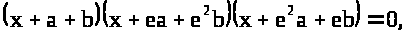называется приведенным или (неполным) кубическим уравнением. Покажем теперь, как можно найти все корни уравнения (6). Для этого заметим, что в силу тождества (1) §2, полученного с использованием циркулянта третьего порядка имеет место тождество