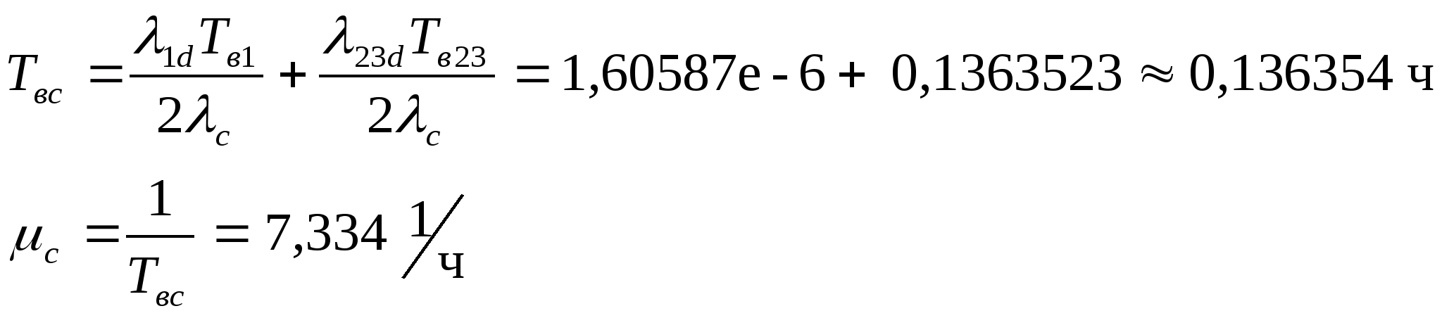 Cравнивая их с требуемыми, видим, что кроме коэффициента готовности, показатели не обеспечены. Так как стоимость резерва времени меньше стоимости ненадежного элемента, применим временное резервирование. Для расчета показателей надежности используются следующие соотношения: