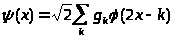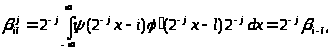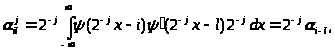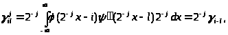 Из свойства 4’ непосредственно следует, что, во-первых, функция может быть представлена в виде линейной комбинации базисных функций пространства V>-1 >. Так как функции {>j>>,>>k>(x)=2-j/2(2-jx-k)}>k>>>>Z>> > образуют ортонормальный базис в V>j>, то имеем