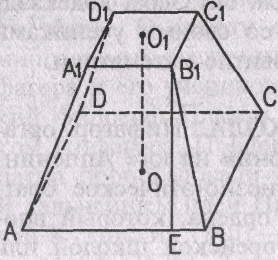Определить объём правильной четырёхугольной усечённой пирамиды, если её диагональ равна 18 см., а длины сторон оснований 14 и 10 см..