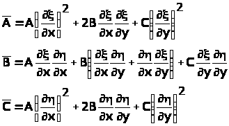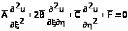 де коефіцієнти А, В та С – функції від x та y, які мають неперервні похідні до другого порядку включно у області R. За допомогою перетворення змінних