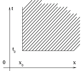Як ми бачимо, формула (6.6) дозволяє у явному вигляді написати розв’язок данної задачі, оскільки точку М(x>1>, t>1>) ми вибрали довільно.