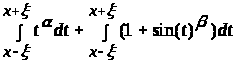 Разделим интеграл на два интеграла и вычислим их отдельно.