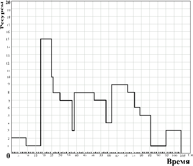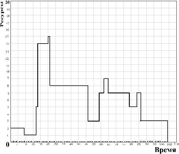 При построении календарного графика необходимо учитывать наличие ресурсов, так как одновременное (параллельное) выполнение некоторых операций из-за ограничений, связанных с рабочей силой, оборудованием и другими видами ресурсов, может оказаться невозможным. Именно в этом отношении представляют ценность резервы времени некритических операций. Сдвигая некритическую операцию в том или ином направлении, но в пределах ее полного резерва времени, можно добиться снижения максимальной потребности в ресурсах. Однако даже при отсутствии ограничений на ресурсы полные резервы времени обычно используются для вырабатывания потребностей в ресурсах на протяжении всего срока реализации программы. По существу, это означает, что программу удается выполнить более или менее постоянным составом рабочей силы по сравнению со случаем, когда потребности в рабочей силе (и др. ресурсах) резко меняются при переходе от одного интервала времени к другому.