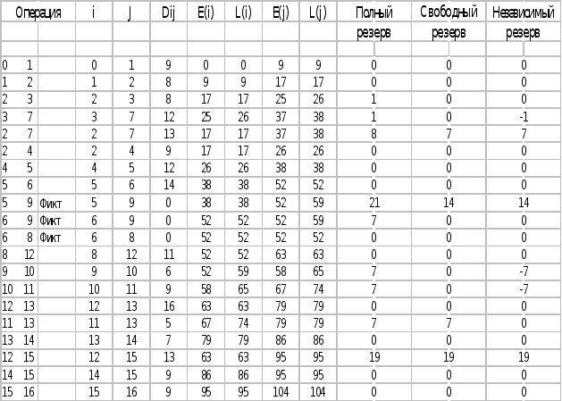 Теперь вычислим резервы времени для некритических операций. Рассчитанные резервы времени внесем в таблицу 1.
