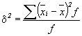Средняя арифметическая взвешенная равна сумме произведений вариант (x) на их частоты или веса (f), поделенной на сумму частот.