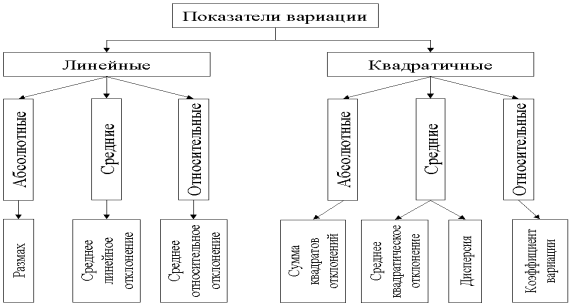 При характеристике колеблемости признака используют систему абсолютных и относительных показателей.