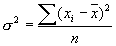 Средне квадратическое отклонение (σ) и дисперсия (σ2) определяются так: