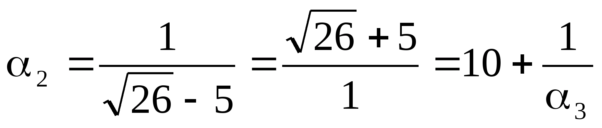 Алгоритм Евклида дает возможность найти представление (или разложение) любого рационального числа в виде цепной дроби. В качестве элементов цепной дроби получаются неполные частные последовательных делений в системе равенств (1), поэтому элементы цепной дроби называются также неполными частными. Кроме того, равенства системы (2) показывают, что процесс разложения в цепную дробь состоит в последовательном выделении целой части и перевертывании дробной части.