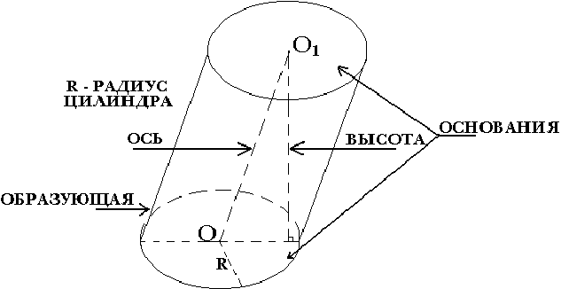 Цилиндр-это фигура, состоящая из двух кругов, совмещаемых параллельным переносом и всех отрезков, соединяющих соответствующие точки этих кругов.