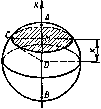 Рассмотрим окружность с центром О и радиусом R (рис. 1), лежащую в плоскости Я. Будем вращать ее вокруг диаметра АВ. Тогда каждая из точек окружности, например М, в свою очередь опишет при вращении окружность, имеющую своим центром точку М>0>—проекцию вращающейся точки М на ось вращения АВ. Плоскость этой окружности перпендикулярна к оси вращения. Радиус ОМ, ведущий из центра исходной окружности в точку М, будет сохранять свою величину во все время вращения, и потому точка М все время будет находиться на сферической поверхности с центром О и радиусом R. Шаровая поверхность может быть получена вращением окружности вокруг любого из ее диаметров.