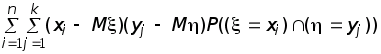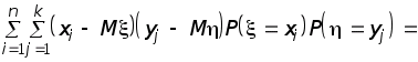 >Также надо поступить со случайной величиной , разбив ее область значений e; f на равные отрезки g0 = e; g1; g1; ge…gk-1; gk=f, и приняв за возможные значения середины отрезков gk-1; gk. Таким образом мы получили дискретные случайные величины *=x1; x2; …xn и *=y1; y2; …yk, причем каждой паре (xi; yj) ставится в соответствие вероятность >