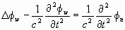 3. Электромагнитная волна (масса покоя равна нулю; индекс полей и потенциалов “w”). Электромагнитная волна это особый вид материи (или, если кому-то это больше по душе: особое состояние эфира, вакуума и т.д.), который после излучения существует самостоятельно, независимо от источников, которые излучили электромагнитную волну. В отличие от полей зарядов, которые были рассмотрены выше, поля и потенциалы электромагнитной волны являются всегда запаздывающими и вихревыми. Запишем уравнение для векторного потенциала электромагнитной волны.