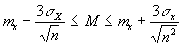 Посмотрев на формулу для математического ожидания mx, можно увидеть, что эта величина есть не что иное, как сумма большого числа случайных величин - отдельных наблюдений. Поэтому в силу центральной предельной теоремы величина mx подчиняется нормальному закону (см. рис.1), со средним (теоретическим) М и неизвестным стандартным отклонением S. Можно доказать, что S в Ц n раз меньше стандартного отклонения каждого отдельного наблюдения, для оценки которого можно использовать величину s х. Поэтому по правилу “трех s “ для Z - закона получаем, что с доверительной вероятностью р=0,997: