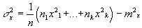 Рассмотрим случай, когда в проводимом эксперименте числовая шкала имеет единицу измерения, т.е. про полученные числовые величины всегда можно сказать, насколько одно больше другого. Например, х - это число ошибок, допущенных при каком-либо тестировании, или число правильных ответов. Обозначим х1,...,хк деления этой шкалы, а n1,...,nk - частоты или число попаданий случайной величины х на каждое из этих делений. Например, в тестировании: шкала х1=0 правильных ответов, ..., хк=к-1 правильных ответов; n1 тестируемых не дали ни одного правильного ответа, ..., nk тестируемых дали к-1 правильных ответов.