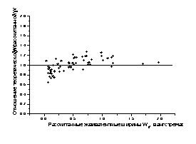 Внутренняя ошибка определения эквивалентной ширины составила в среднем 5 %. На рис. 2 показан график сравнения найденных нами величин по атласу [4] и значений из работы [6].