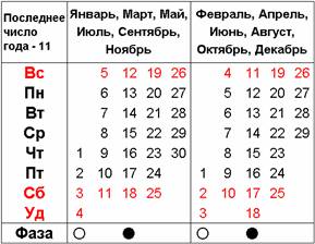 4. Средняя фаза лунного месяца на конец года будет равна: