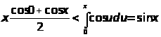 Задача 1.9. Доказать, что при x>0 выполняется cos x >1–(1/2)x2.