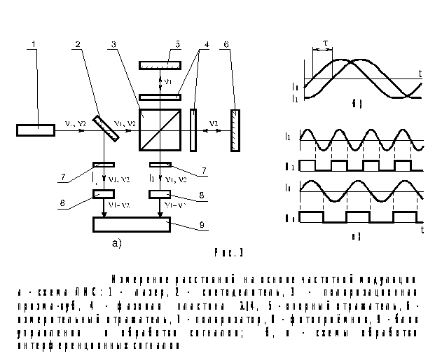 На рис. 3а приведен пример схемы ЛИС. Двухчастотный лазер 1