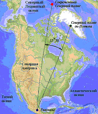 Местоположение же Северного полюса в районе Гренландии (в районе вычисленных координат) задает совершенно иной температурный режим северной части Атлантики, что вполне могло иметь следствием как иное направление самого течения, так и его температуру. И действительно, по имеющимся данным «известно... что направление теплого течения Гольфстрим в этот период изменилось» (В.Бабакин, «Самые большие загадки прошлого»), что вполне может быть следствием «проскальзывания» земной коры и таяния льдов «старого» полюса.