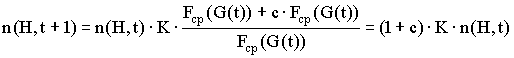 Используя выражения для средней ценности популяции F>ср>(G(t)) и подпопуляции F>ср>(G>H>(t)), можно записать формулу (1) в виде:
