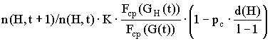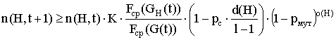 Пусть в популяции G(t) содержится n(H, t) строк, удовлетворяющих схеме H. Тогда в результате воспроизводства количество строк, удовлетворяющих схеме H в популяции G(t+1) будет равно n(H, t+1):