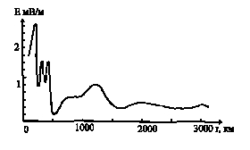 С увеличением расстояния напряженность электрического поля отраженной от ионосферы волны увеличивается, и на расстояниях 700—1000 км напряженности полей земной и ионосферной волн становятся примерно равными. Суперпозиция этих двух волн дает интерференционную картину поля (рис 1.1).