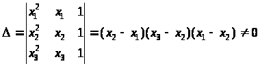 Так как числа х>1>, х>2>, х>3> различны, то определитель этой системы отличен от нуля: