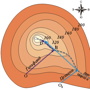 – Погодите. Мы должны двигаться в направлении низины, прикладывая к земле уровень. Как только уровень покажет, что поверхность горизонтальна, – мы в низине. Вот как я здесь представил на рисунке.