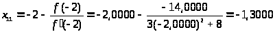 10. Продолжим уточнение корня по схеме. Для этого найдём значения функции на концах суженного отрезка: