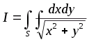 Область интегрирования здесь есть треугольник S, ограниченный прямыми y=0, y=x, x=1