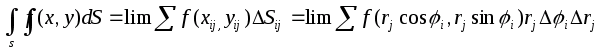 Область интегрирования S разобьем на элементарные ячейки DSi с помощью координатных линий r = ri (окружности) и j = ji (лучи)