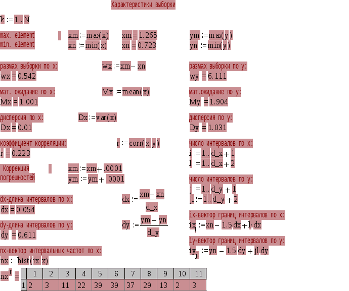 2.3 Постpоение матpицы эмпиpических веpоятностей и функции pаспpеделения двухмеpной случайной величины по pезультатам обpаботки поля экспеpиментальных данных.