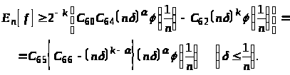 С.Н.Бернштейн, Д.Джексон и Ш.Валле-Пуссен получили зависимости между оценками сверху для E>n>[f] и дифференциальными свойствами f. Некоторые дополнения к их теоремам доказаны А.Зигмундом. нам предстоит, поэтому, получить зависимости между дифференциальными свойствами f и оценками E>n>[f] снизу. Впервые задачами типа 1 занимался С.Н.Бернштейн. А именно, им получено ассимптотическое равенство: