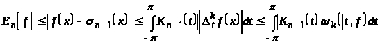 Таким образом, теорема Джексона дает оценку сверху для наилучших приближений, если известны дифференциальные свойства аппроксимируемой функции.