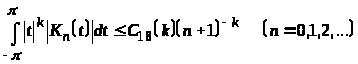 В §4 формулируется доказанное в работе С.Б.Стечкина [2] обобщение известного неравенства С.Н.Бернштейна [3], [4] для производных от тригонометрического полинома. Мы приводим затем ряд следствий из нашего неравенства (*). Они играют существенную роль при доказательстве теорем §5.